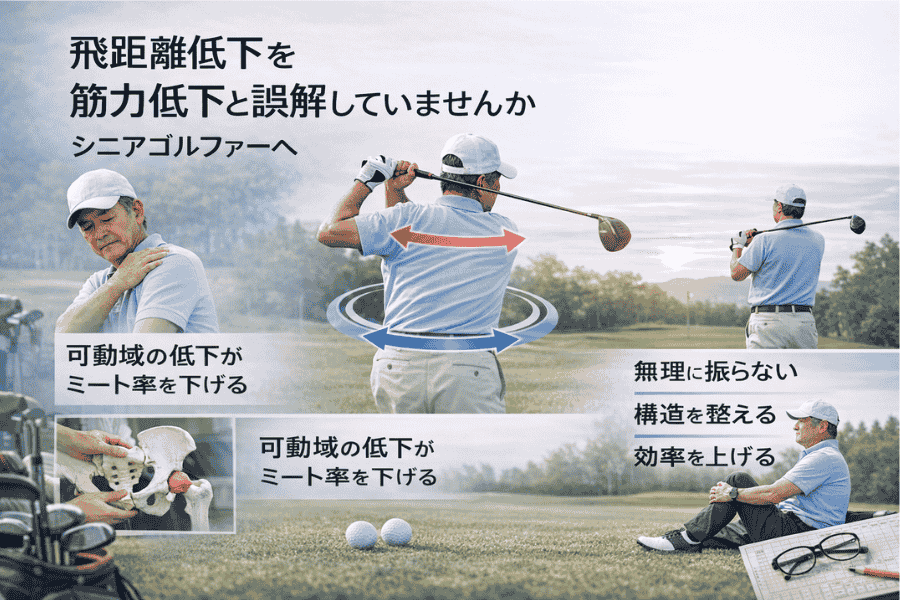 飛距離が落ちてきたと感じたとき、多くのシニアゴルファーは「筋力の衰え」が原因だと考えがちです。