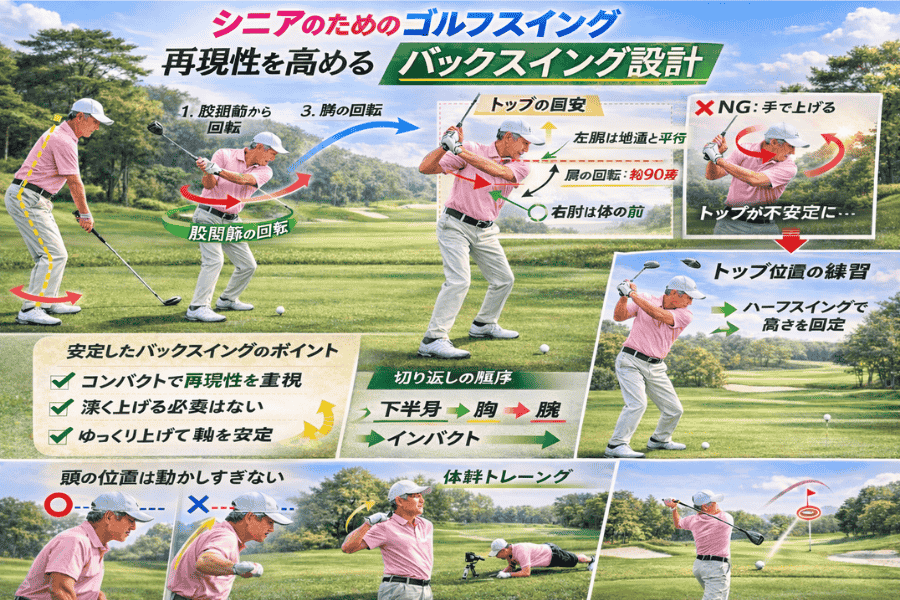 シニアのためのゴルフスイングで再現性を高めるバックスイング設計